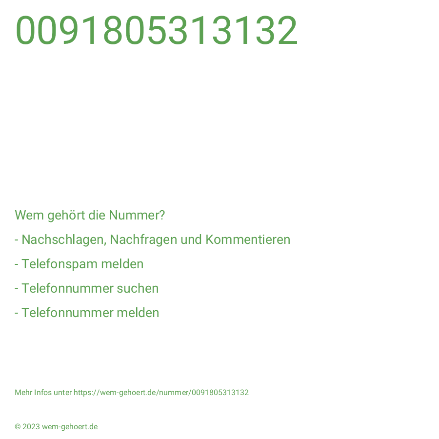 Wer kennt diese Nummer 0091805313132? Wer ruft mich auf dem Festnetz mit 0091805313132 an? Nummer 0091805313132 ruft an, was tun?